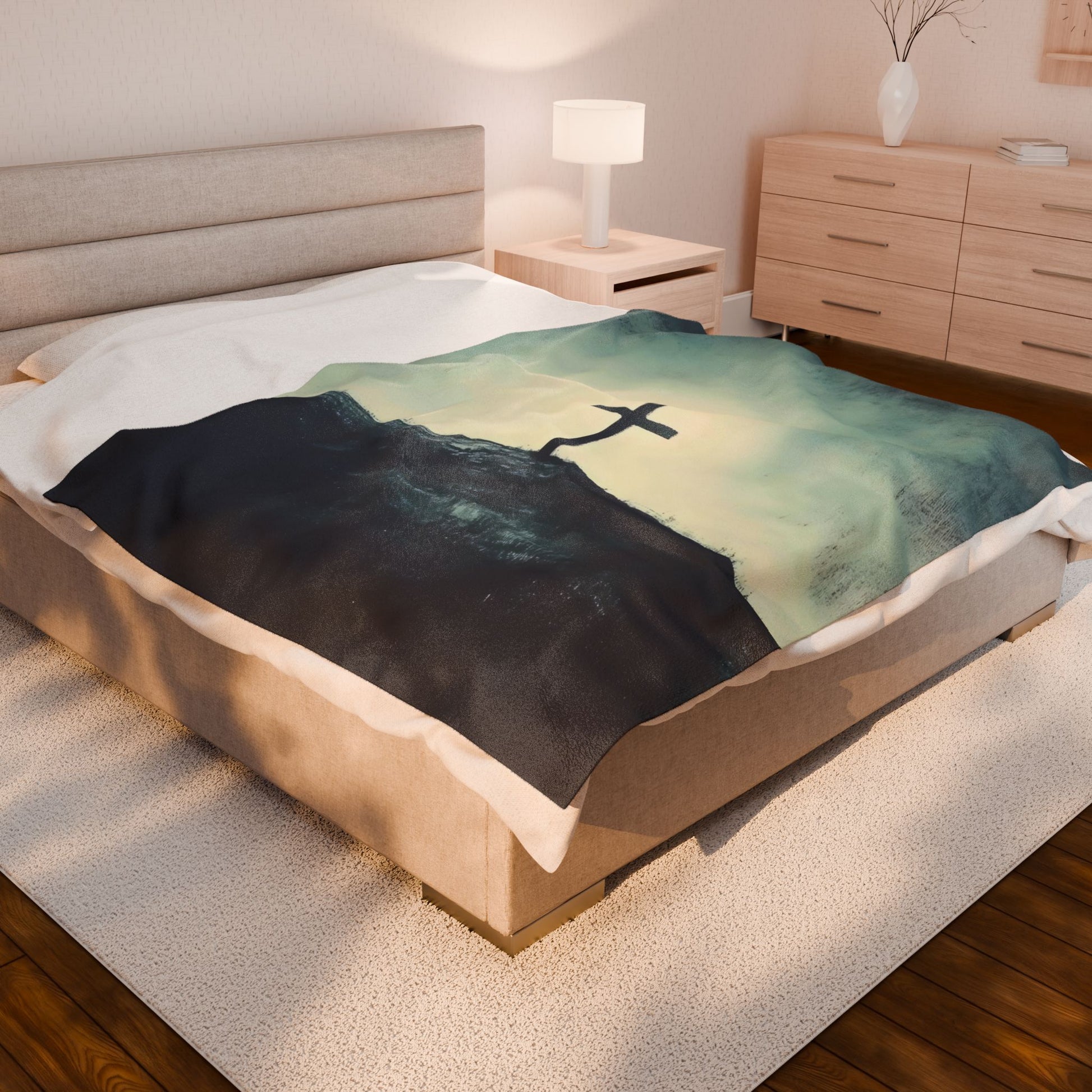Cross on Hill Velveteen Plush Blanket | Religious Christian Decor, Prayer Throw
