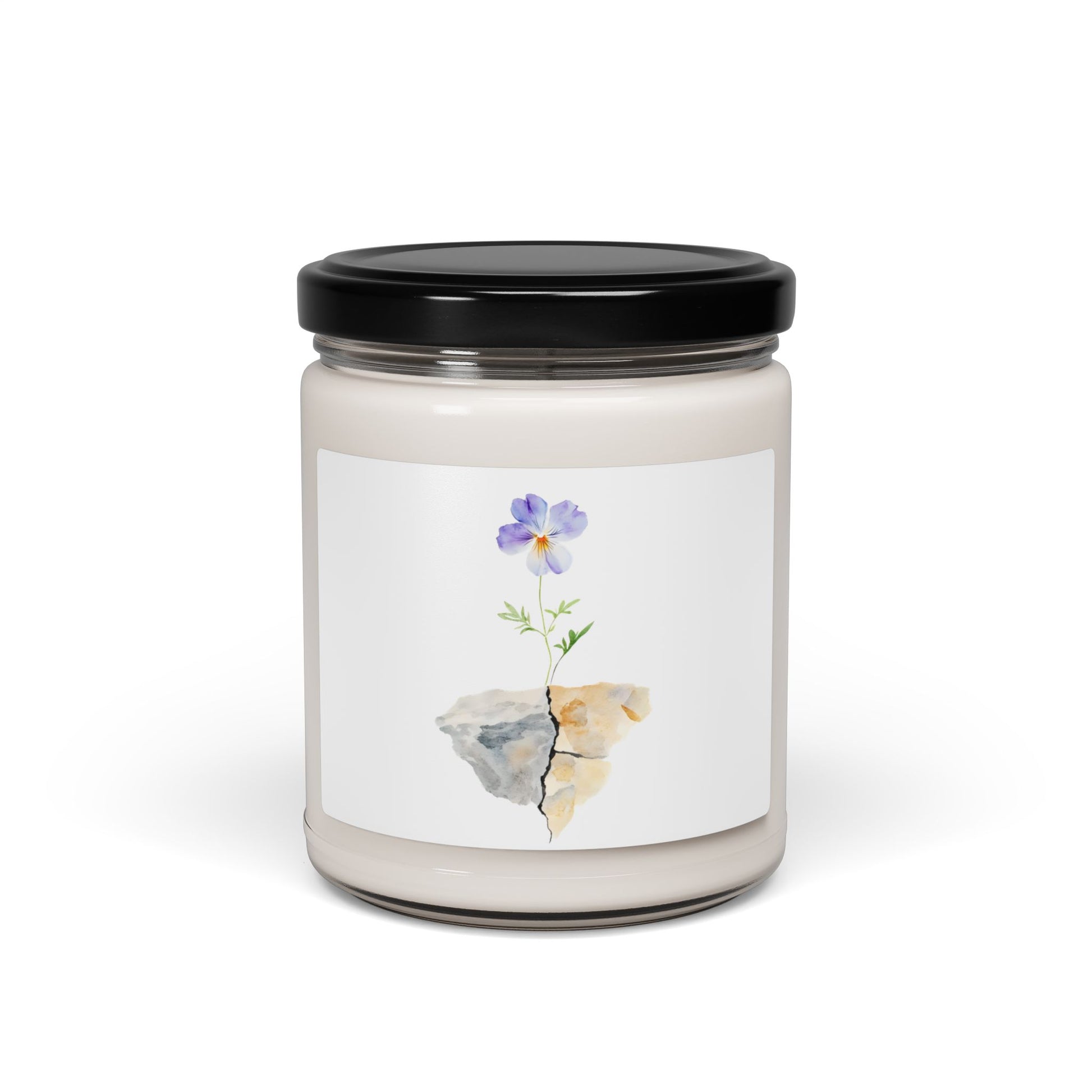 A quietly elegant soy candle housed in a reusable glass jar. Hand-poured from a 100% natural soy wax blend with a cotton wick, this 9 oz candle burns cleanly for 50–60 hours. Choose from twelve curated scents — from warm Cinnamon Vanilla and seasonal Christmas Warmth to calming White Sage + Lavender or airy Sea Salt + Orchid — each enhanced with natural essential oils. The jar features a soft, watercolor botanical label that brings a gentle, reflective touch to nightstands, desks, or window sills. When the wax is gone, rinse and repurpose the glass as a votive holder, planter, or small storage jar. Finished with a glossy adhesive label and assembled in the USA.
